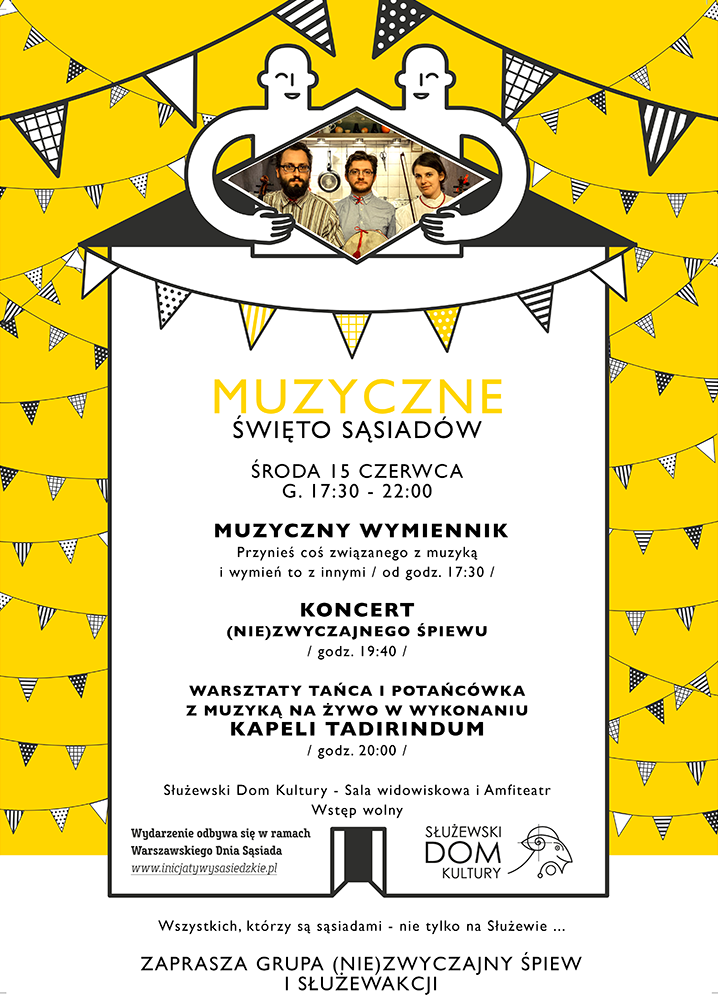 MUZYCZNE ŚWIĘTO SĄSIADÓW. Zapraszamy mieszkańców Służewa (i nie tylko) na wspólne muzykowanie.Sala widowiskowa i amfiteatr/wstęp wolny