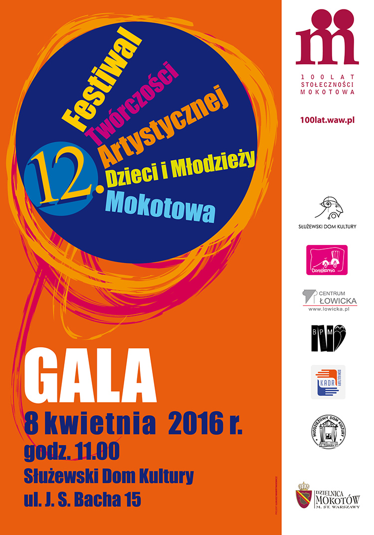 Podczas koncertu zaprezentują się młodzi artyści nagrodzeni w konkursach artystycznych zorganizowanych przez mokotowskie domy kultury. Organizatorami są Dzielnica Mokotów m. st. Warszawy oraz domy kultury na Mokotowie. Sala widowiskowa/wstęp wolny