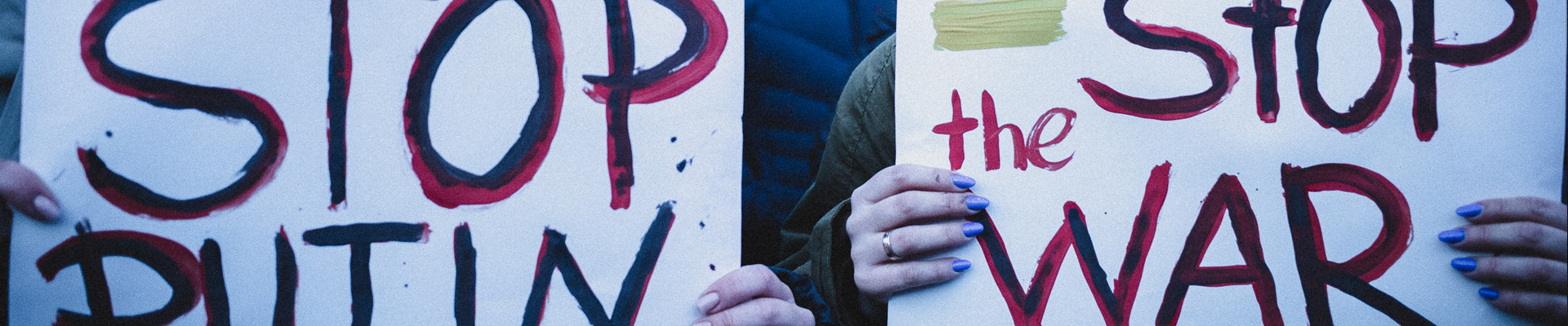Minął rok od rozpoczęcia brutalnej inwazji rosyjskiej wymierzonej w Ukrainę. 24 lutego 2023 inaugurujemy wystawę fotografii reportażowej Agaty Kubis „STOP WOJNIE/СТОП ВIЙНІ". Wystawa prezentuje wybór zdjęć, wykonanych podczas publicznych protestów przeciwko rosyjskiej napaści na Ukrainę. Wielotysięczne protesty odbywały się pod ambasadą rosyjską w Warszawie w roku 2022 i były wyrazem solidarności wobec narodu ukraińskiego oraz sprzeciwem wobec trwającej wojny.