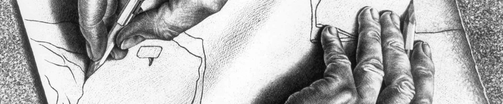 Ilustracja do artykułu: Drawing hands, M. C. Escher, 1948